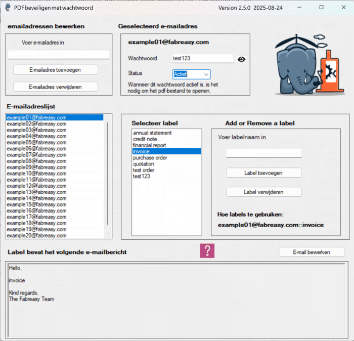 Verstuur gevoelige PDF-rapportages veilig per e mail, zonder extra stappen in je proces. Elke PDF wordt automatisch beveiligd met een wachtwoord dat is gekoppeld aan het e-mailadres van de ontvanger.